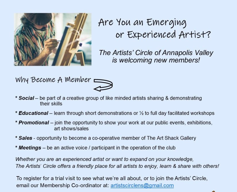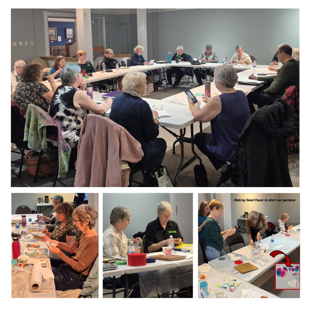 We enjoyed another day with the Artist’s Circle of Annapolis Valley members. In the morning we had a paint session where we shared ideas and techniques. Also we learned how to make seed paper, followed by lunch, treats and a fun networking game. We had a short meeting and the addition of four new members to our group. Was a very fun and interesting day.