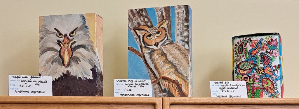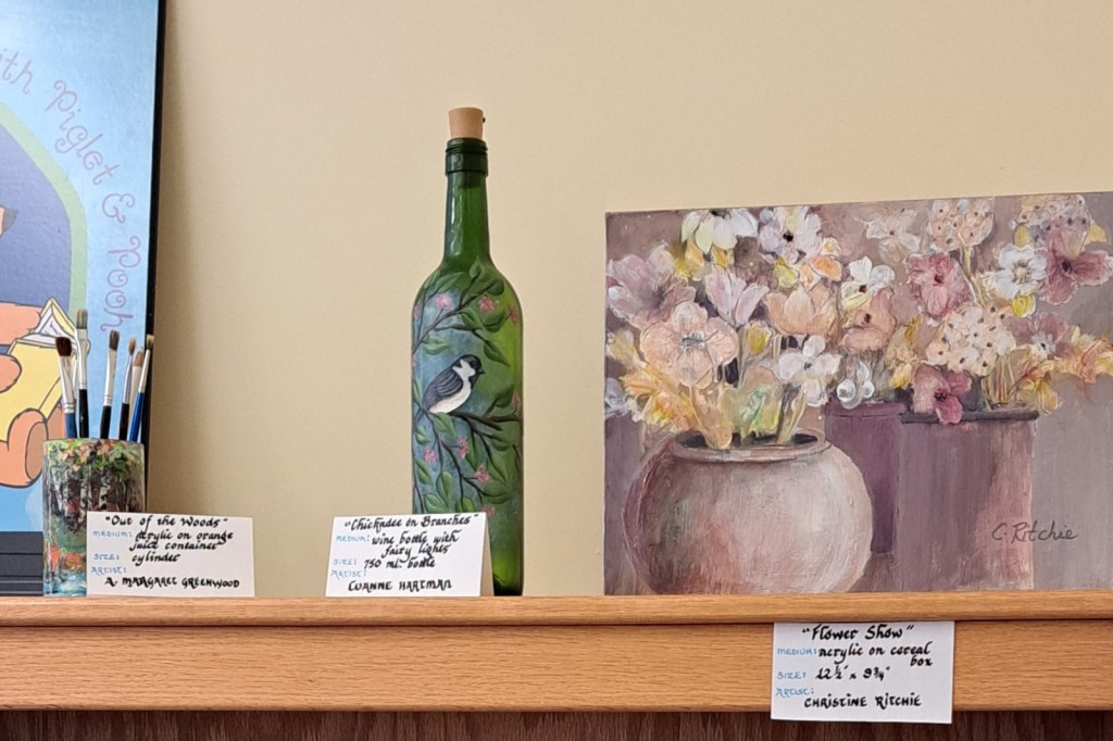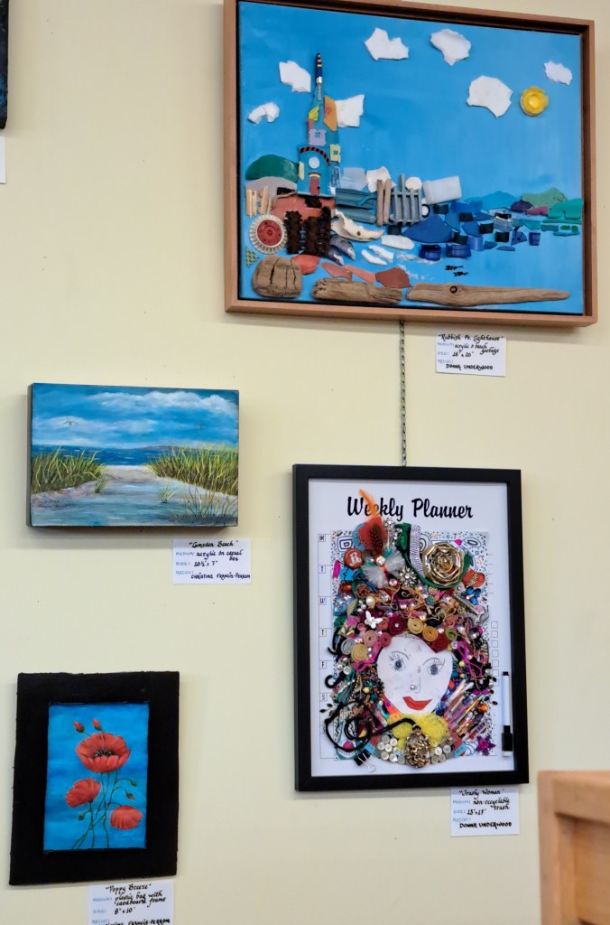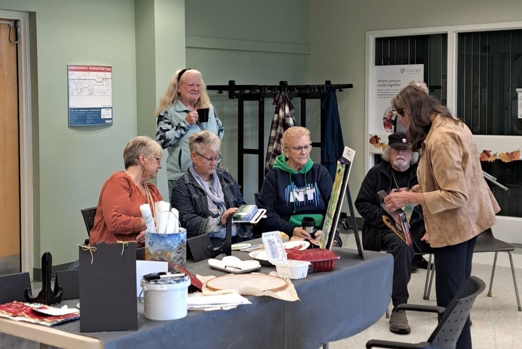 The Art Exhibit, “Waste Not-Recycled Art “, is now on display at CORAH at the NSCC Middleton, the art will be on display until the middle to December. There are additional pieces of art on display from the members and all art is for sale. On the 9 October our members participated in a gallery walk and presented four art demonstrations at CORAH. The demos were presented by Margaret Greenwood, Allison Meisner, Lusanne Hartman and Christine Perron. It was an enjoyable afternoon for all in attendance.