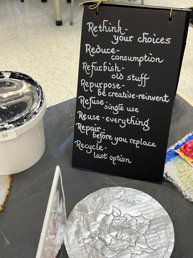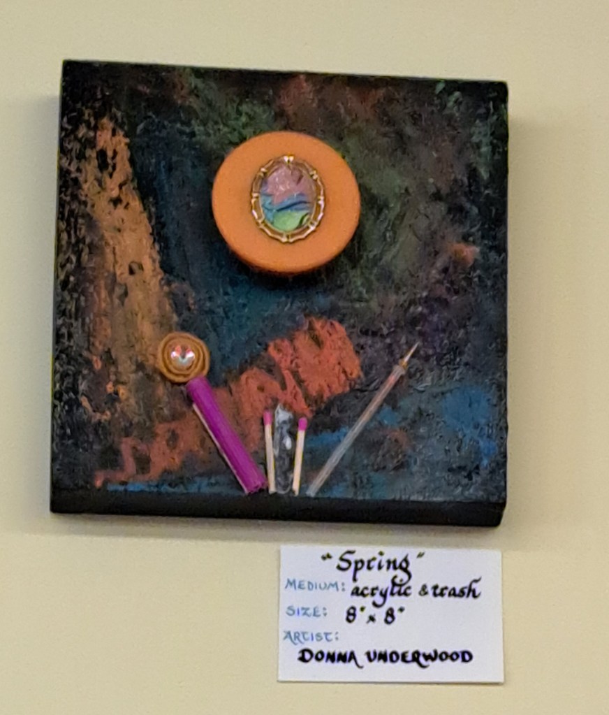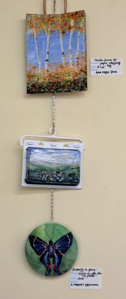 Below are the art pieces that were created for the Artists Circle Recycle Art project. These pieces are now on display and for sale at CORAH in Middleton, until the middle of December.
