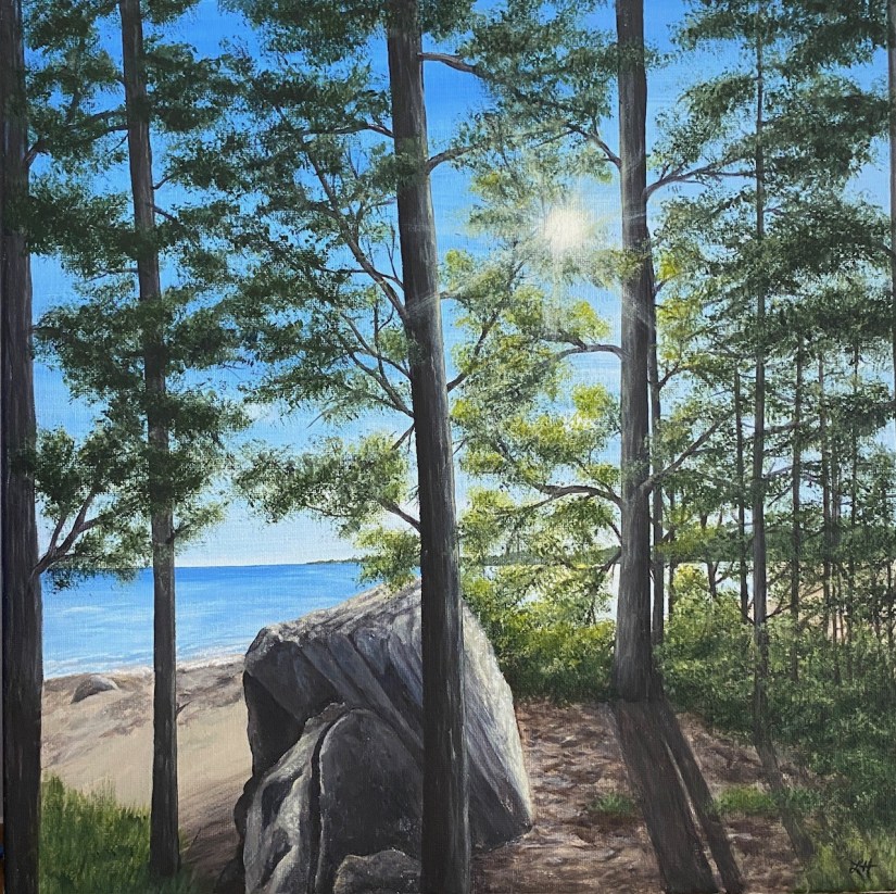 Nature in all its beauty and wonder has been her primary source of inspiration, creating her paintings in an approach of realism in acrylic and watercolour. From the many wonderful sights seen during backcountry camping trips throughout Algonquin Park and other wonderful locations in Ontario, forests, water, animals – nature in general, is where her heart speaks to her. And now, retired in Nova Scotia, the ocean, trails, mountains and rivers that abound the province with their beauty, give her new inspiration to capture in her work.